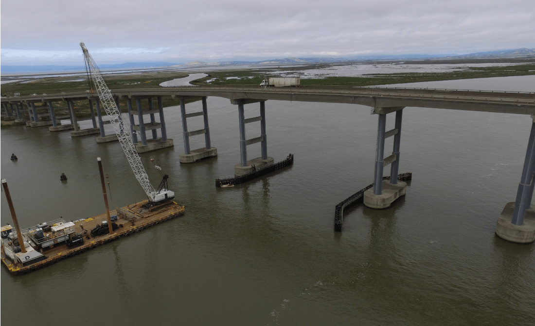Emergency fender wall replacement at Napa River Bridge after vessel impact, ensuring structural integrity.